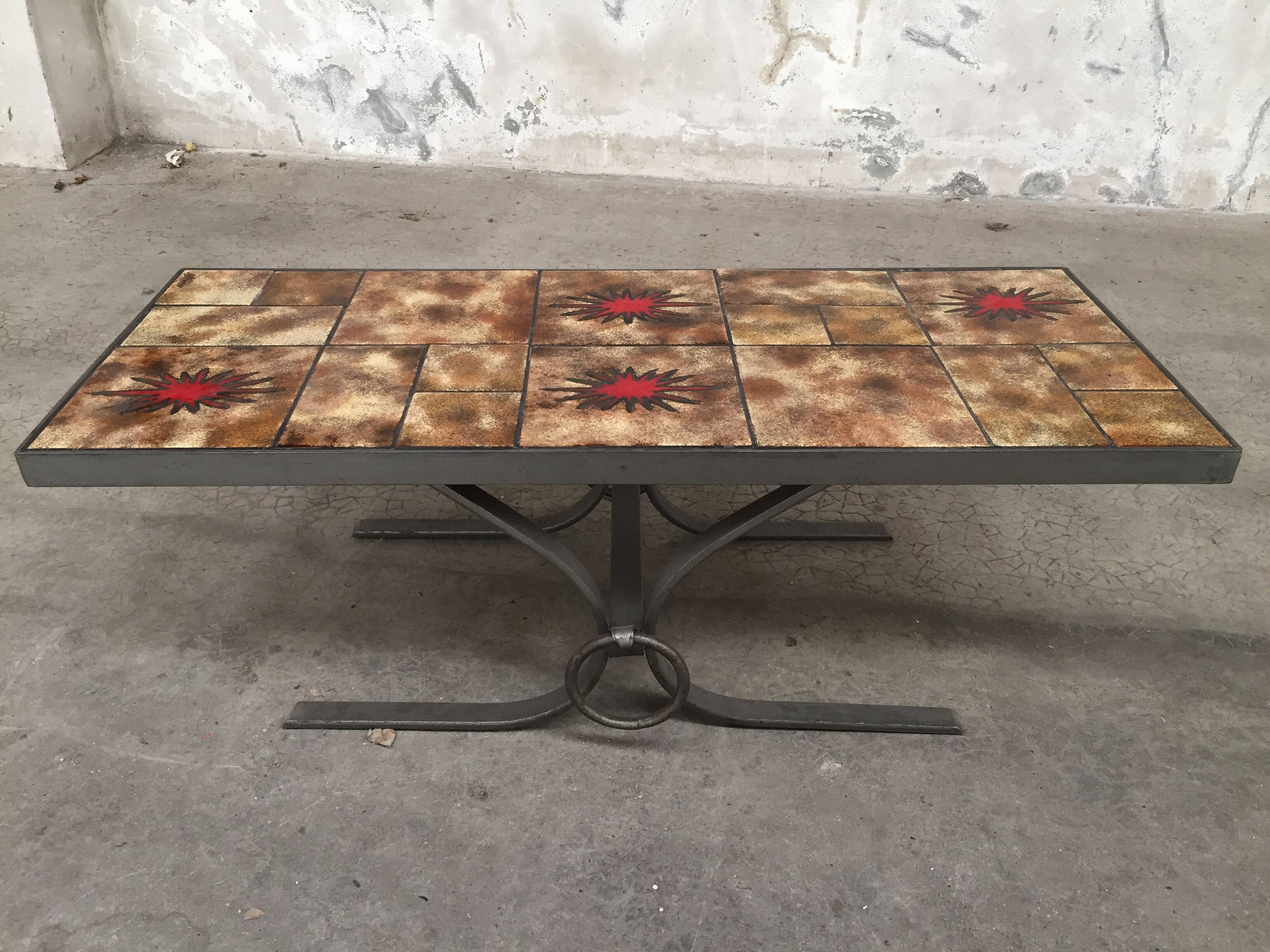 table basse en fer et carrelage annees 70 selency