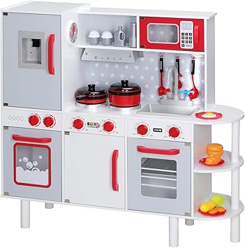 spielwerk cuisine pour enfants en bois 91x33x86 92 cm dinette cuisiniere reglable hauteur 38 accessoires jeu educatif enfant jouet d imitation pour enfant bebe amazon fr jeux et jouets