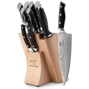 coffret 5 couteaux professionnels en acier inoxydable et carbone socle en bois massif chef pain viande office et cuisine cdiscount maison