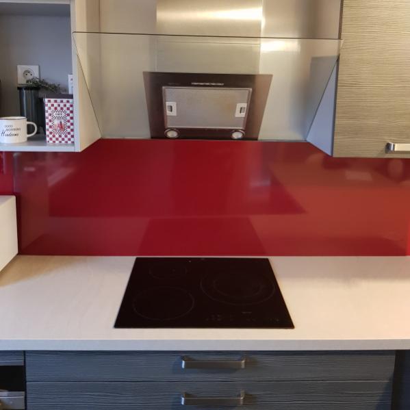 credence cuisine couleur rouge carmin avec degrade impression sur alu ou plexi