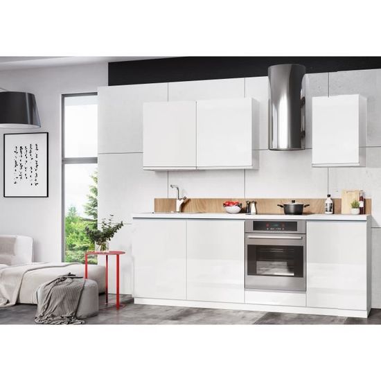 obi cuisine complete l 300 cm blanc laque brillant cdiscount maison