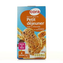 livraison a domicile cora biscuits petit dejeuner miel et chocolat 400g