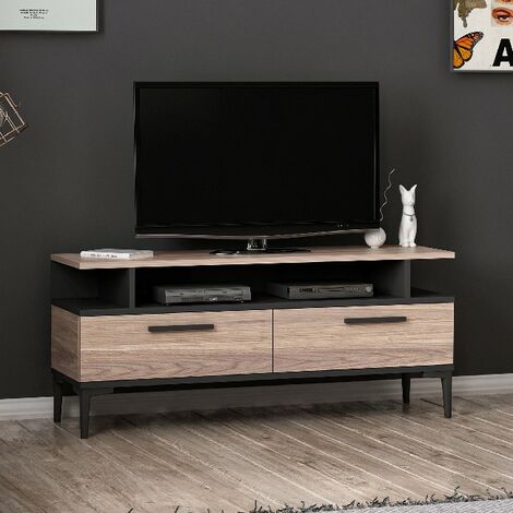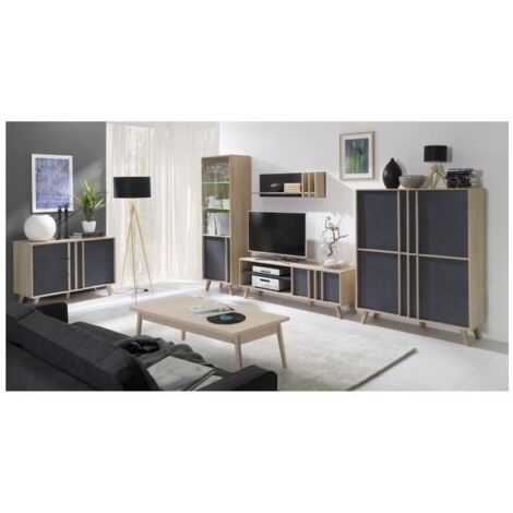 meuble tv rilla moderne avec portes etageres pour salon noyer anthracite en bois 150 x 35