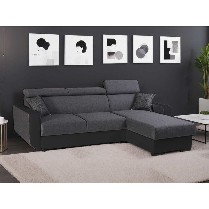 dustin canape d angle reversible 4 places convertible avec coffre tetieres reglables couleur noir gris cdiscount maison