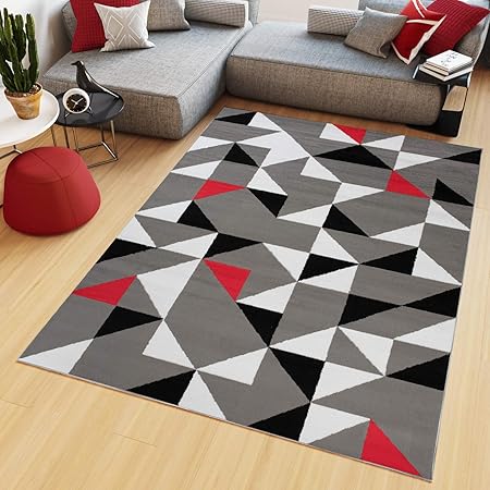 tapis salon rouge noir blanc 240 300 cdiscount
