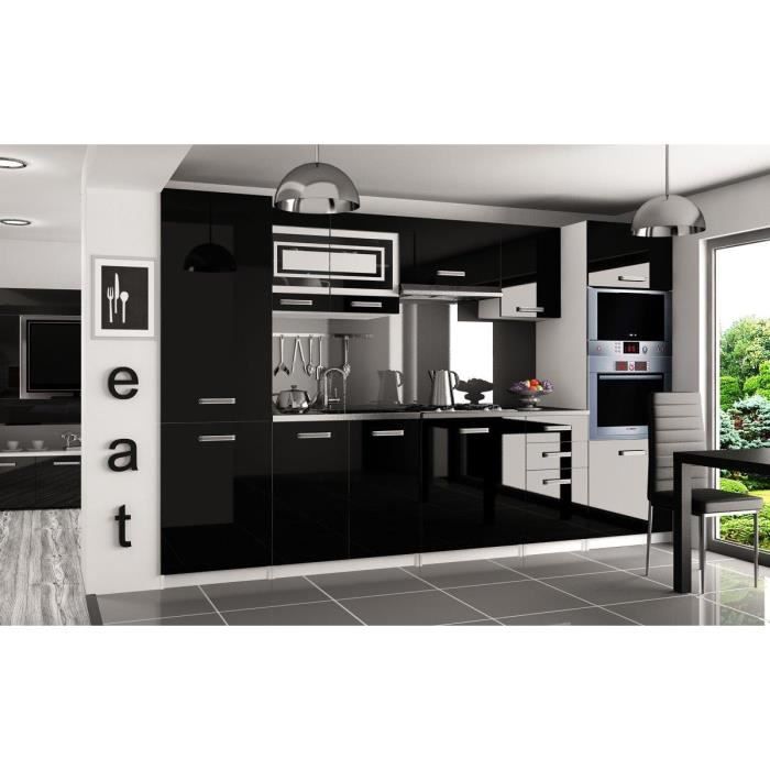 ultra cuisine complete avec colonne four et plan de travail inclus l 300 cm noir brillant cdiscount maison