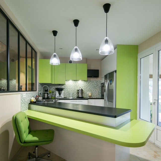cuisine verte et noire avec ilot cuisines design designs de petite cuisine cuisine verte