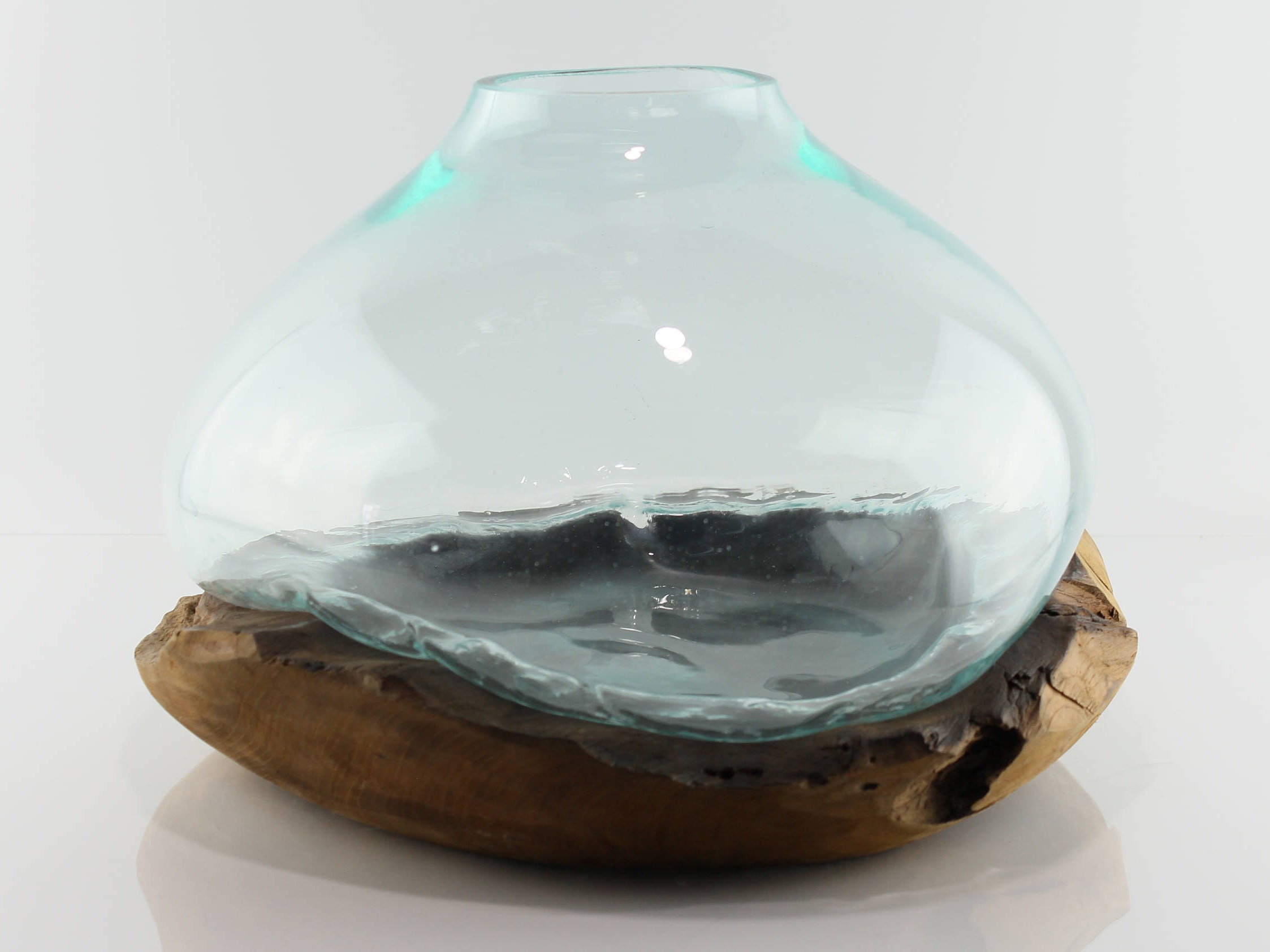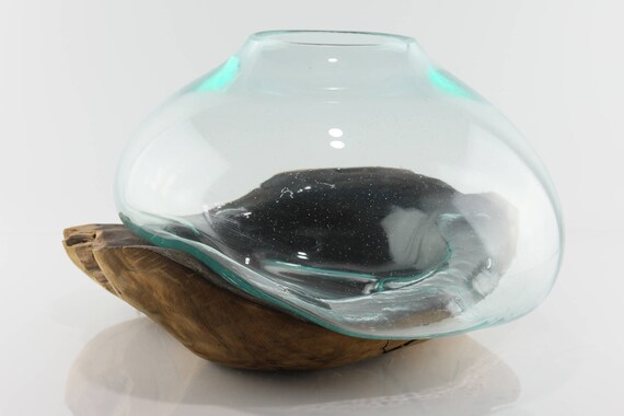 connaissez vous ce travail du bois et du verre qu on trouve beaucoup a bali c est une racine de teck sur laquelle est pos art du verre vase verre verre fondu