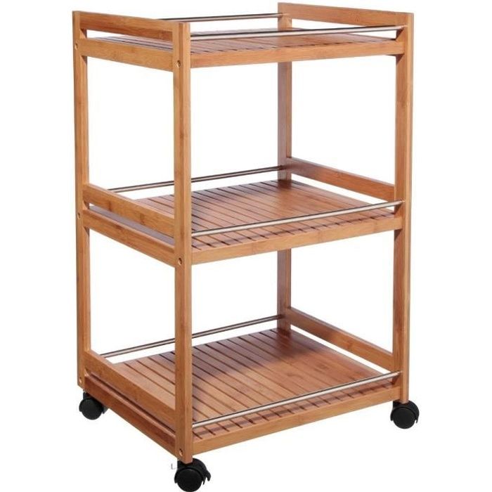 desserte a roulette a 3 niveaux en bambou l 45 x p 38 x h 75 5 cm cdiscount maison