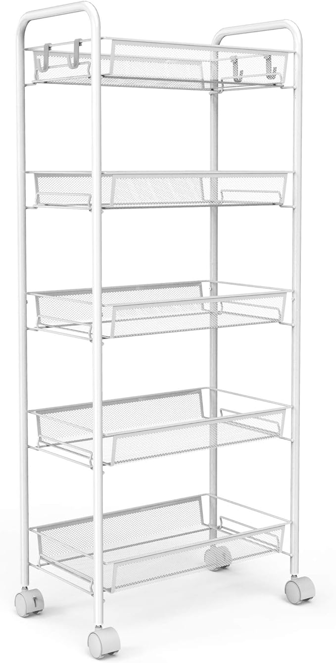 leogreen chariots de service meuble de rangement 5 niveaux 105 5 x 45 x 26 cm blanc materiau fer amazon fr cuisine maison
