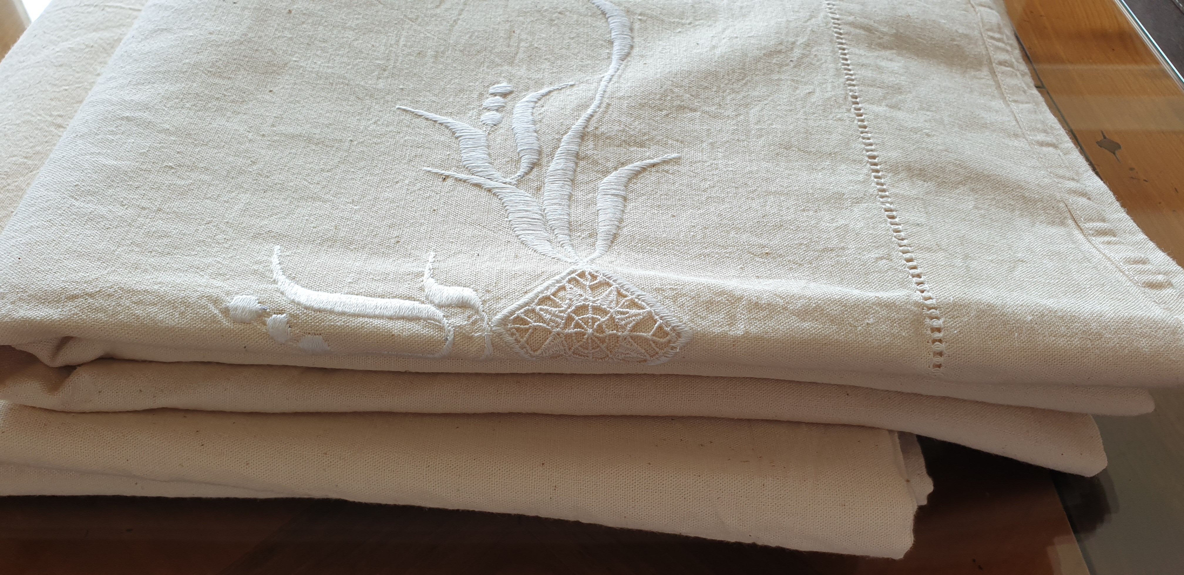lot de 3 draps de lit anciens veritable toile du nord debut du xxe siecle france neuf selency