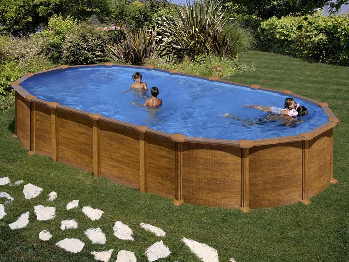 piscine acier aspect bois amazonia ovale 6 34 x 3 99 x 1 32 m gre leroy merlin