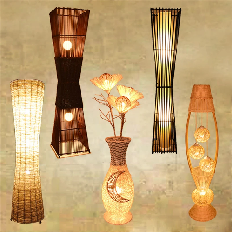 nouveau rotin preparation lampadaire japonais restaurant decor lampes sur pied salon chambre chevet eclairage luminaire aliexpress