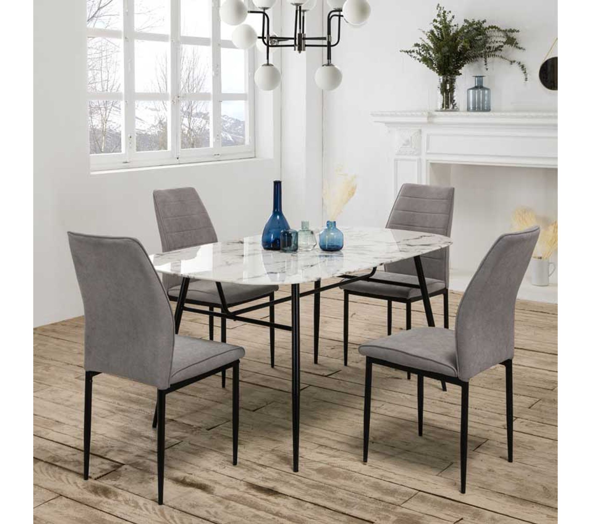 table de repas marbre blanc verre metal nilani table but