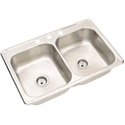 evier de cuisine double et 3 trous en acier inoxydable de 31 pox20 1 2 pox7 po avec rebord wessan home hardware