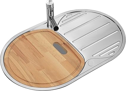 inox poli evier de cuisine en acier avec unite egouttoir evier rond reversible bois planche a decouper inclus la002 amazon fr bricolage