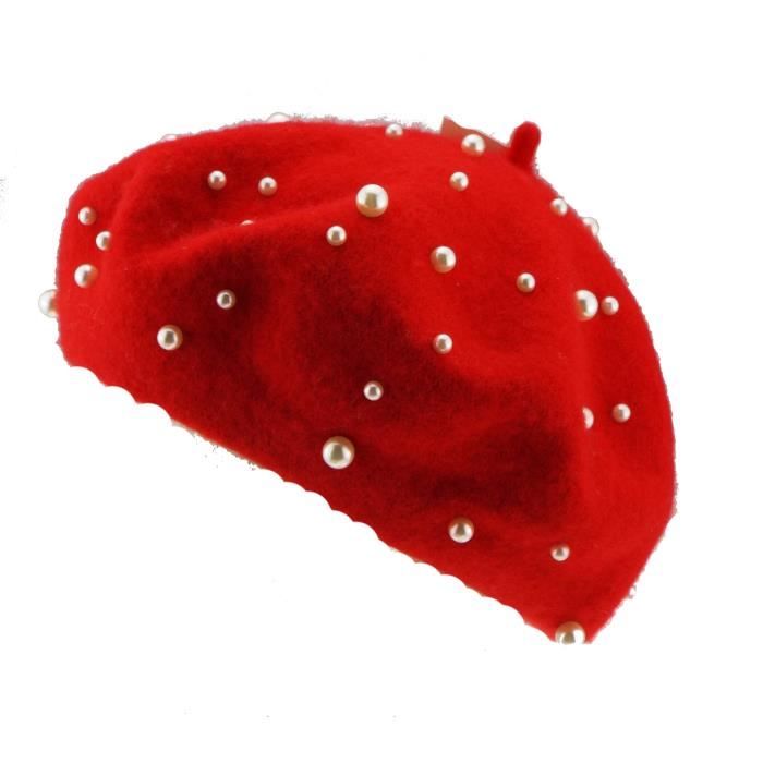 1 beret rouge avec perles femme taille unique 90 laine 10 polyester rouge cdiscount pret a porter