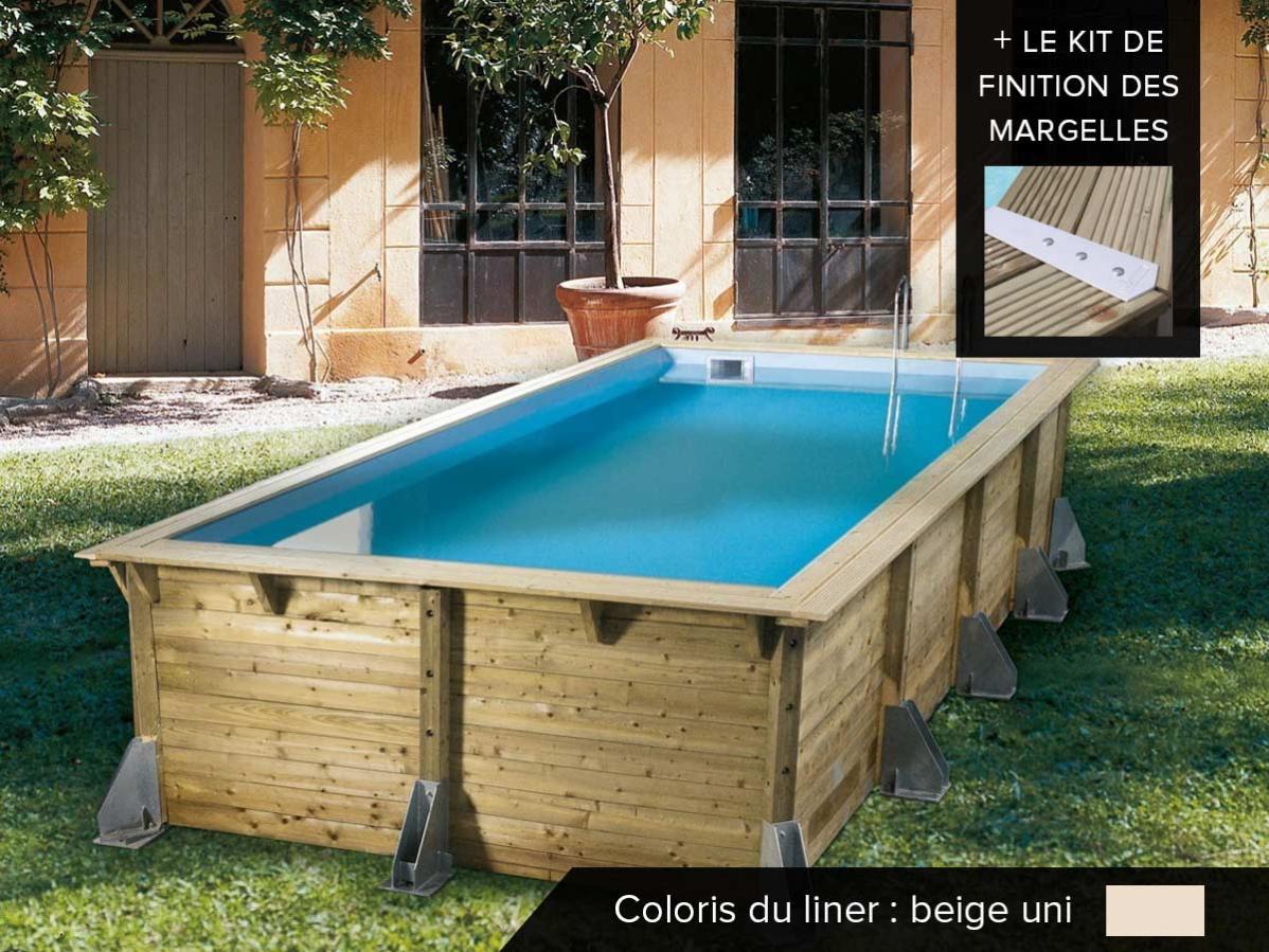 piscine bois azura 5 05 x 3 50 x 1 26 m liner beige kit margelles leroy merlin