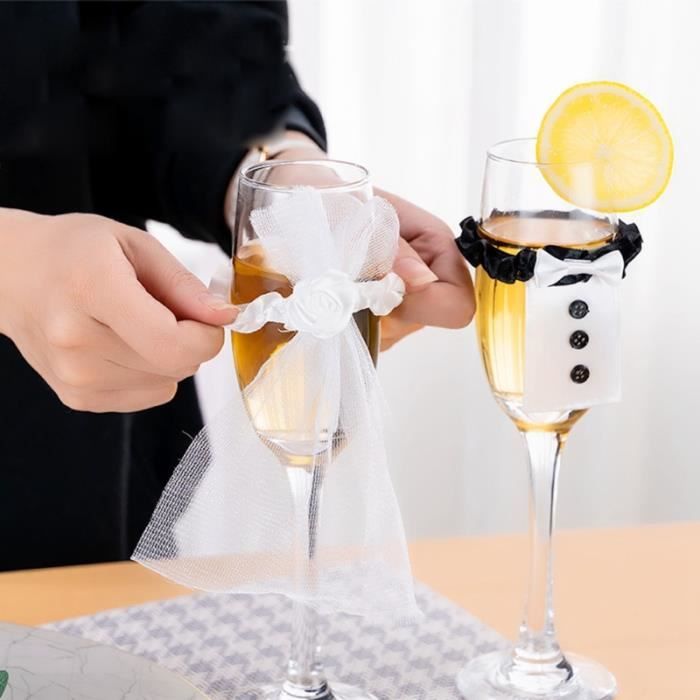 2 pieces de mariage verres a vin couvre flutes a champagne couverture belle robe de marie faveurs de pour la fete objet decoratif cdiscount maison