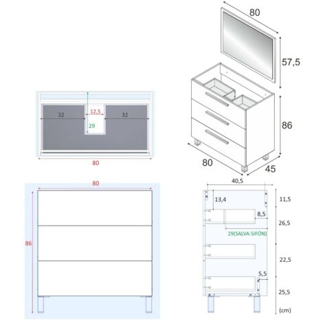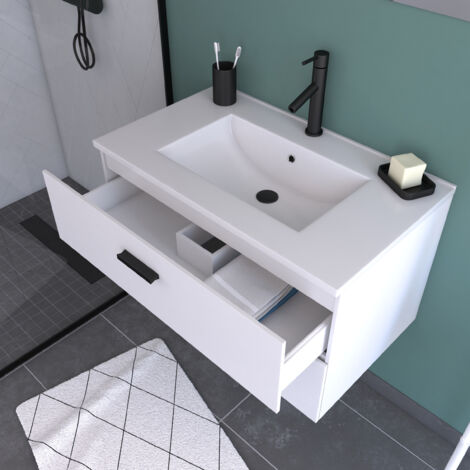 meuble salle de bain 80 cm monte suspendu blanc h46xl80xp45cm avec tiroirs vasque et miroir blanc