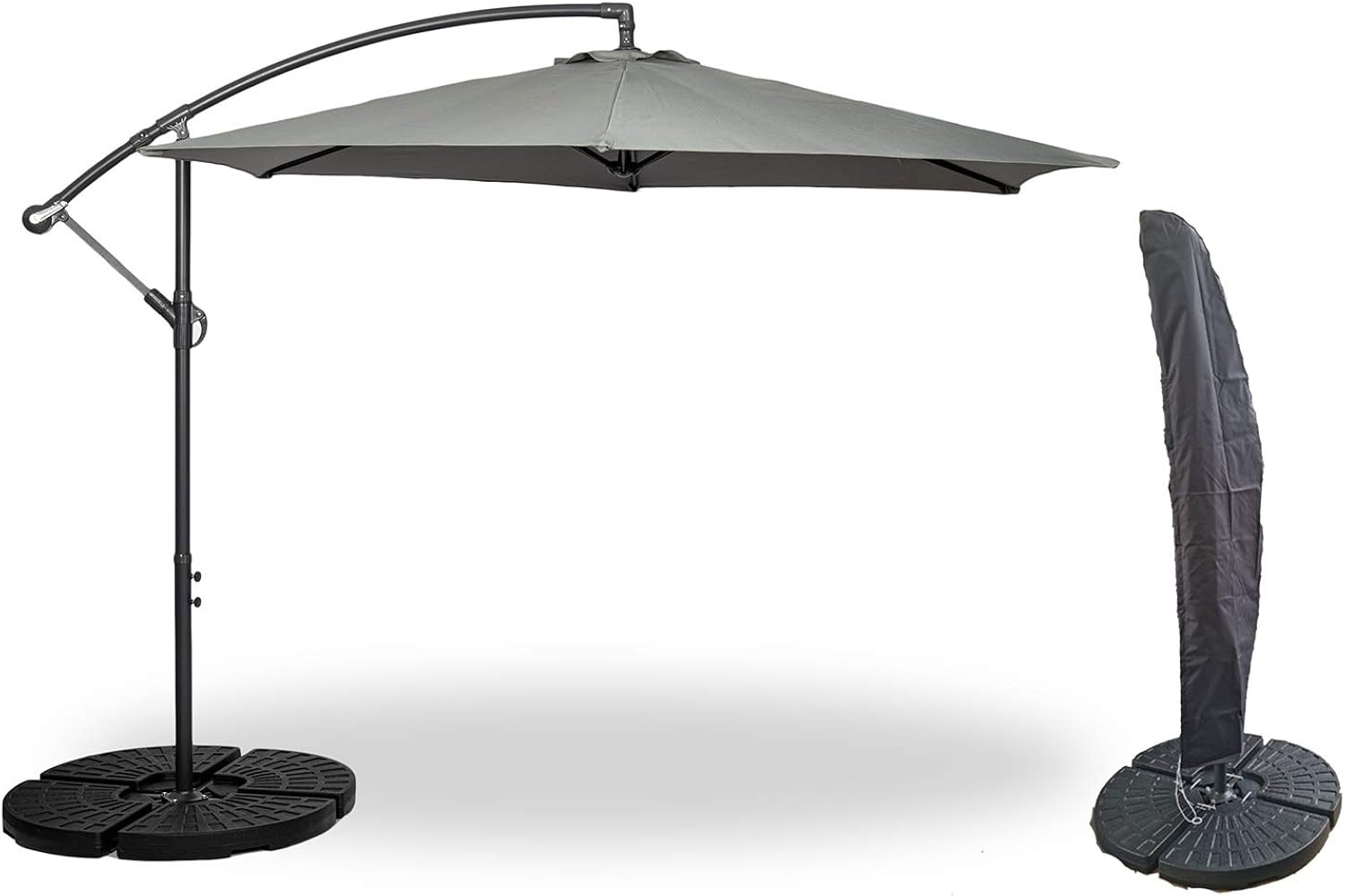 gardenco 3m cantilever banana parasol hanging parasol with crank handle outdoor garden and patio sun shade with pvc coated cover and 4 fillable bases grey amazon co uk garden outdoors