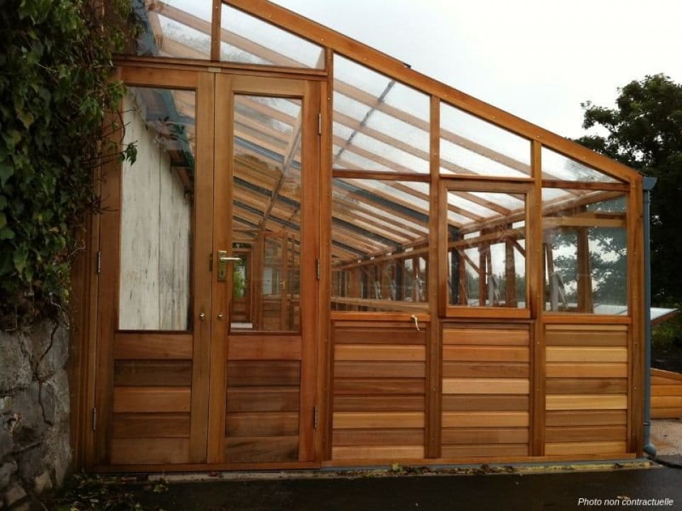 serre en bois adossee porte simple coulissante serre classic bois 8