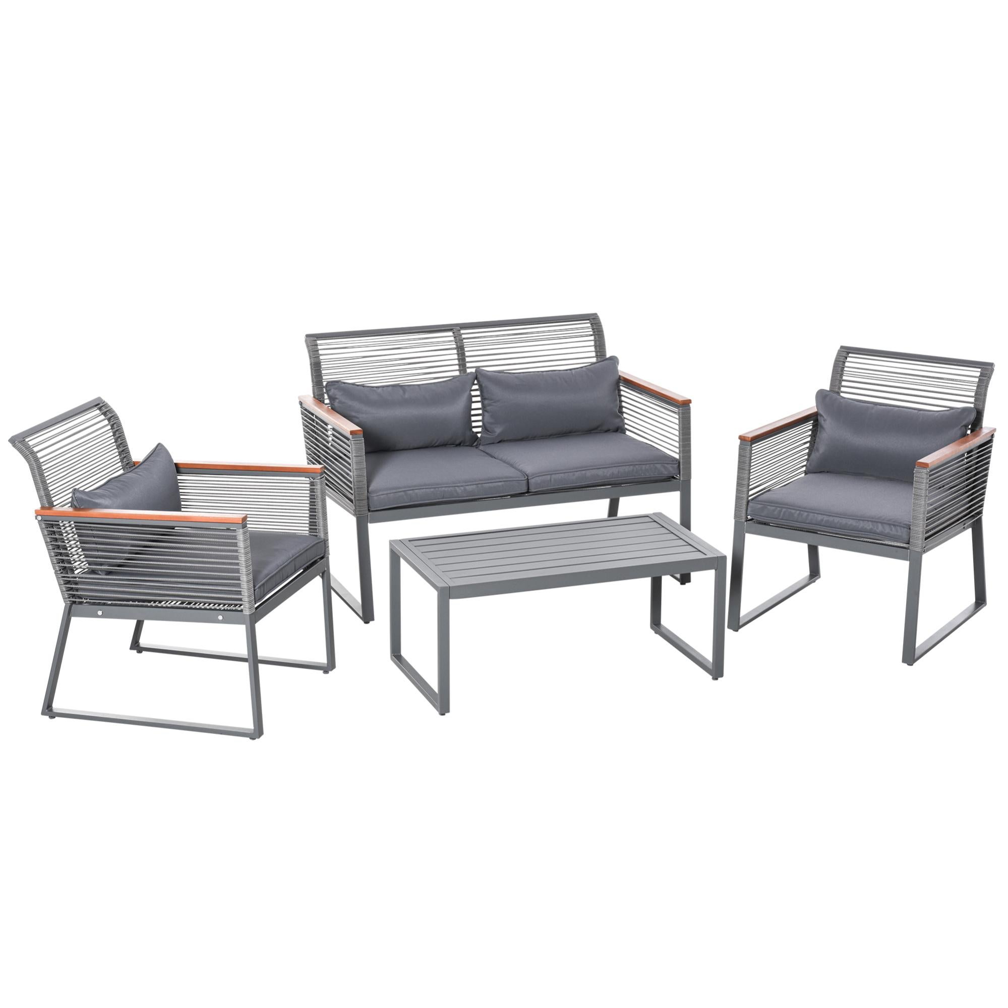 salon de jardin style yachting 4 places table basse acier epoxy coussins gris leroy merlin