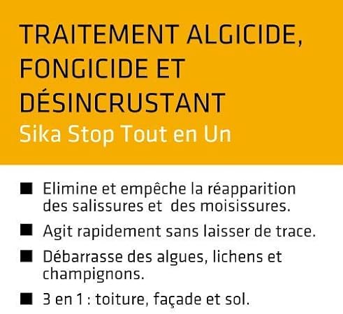 sika stop tout en 1 traitement algicide et fongicide pret a l emploi formule complete nettoyante eliminant les algues vertes rouges et traces noires sur mur toiture terrasse facade dallage 20l amazon fr bricolage
