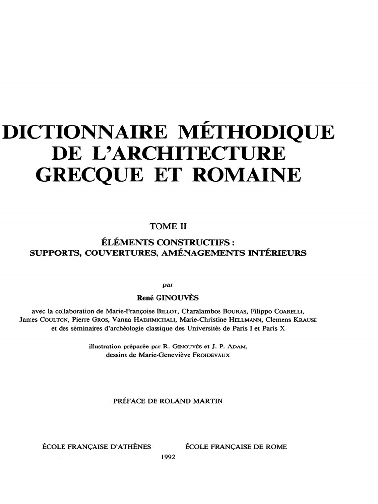 rene ginouves dictionnaire methodique de l architecture grecque et romaine tome ii elements constructifs supports couvertures amenagements interieurs pdf traductions lecture processus