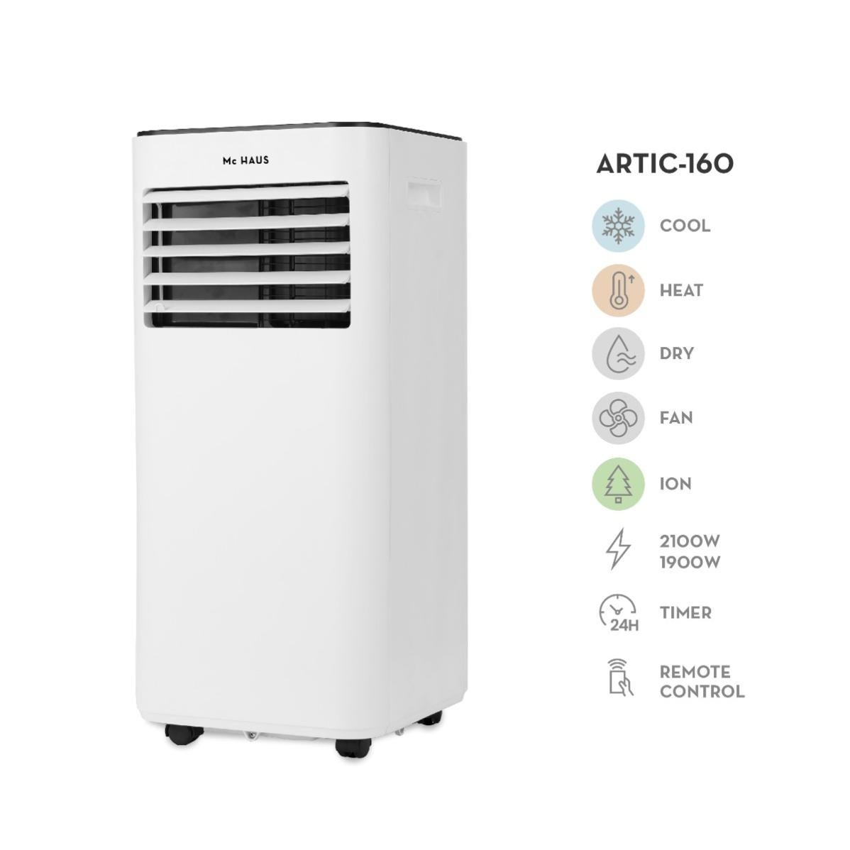 climatiseur mobile froid chaud 2 05kw classe a 4 en 1 refroidissement de 7000btu h 1765 frigories chauffage ventilateur deshumidificateur isolation avec telecommande espaces entre 10 15m artic 160 leroy merlin