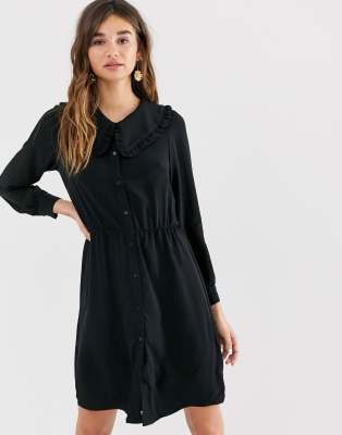 monki mini dress with long sleeve and oversized collar in black monki online sale coshio online shop