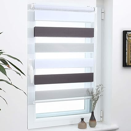 grandekor store enrouleur jour nuit de double tissu 50 x 150 cm lxh blanc gris anthracite store jour et nuit sans percage accessoires d installation inclus pour fenetre ou porte amazon fr cuisine maison