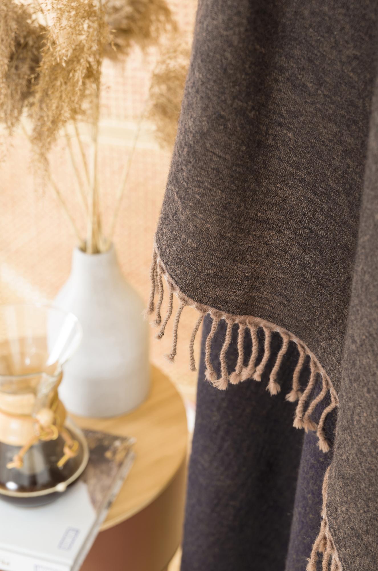wooly plaid en laine bicolore marron beige a franges 200 x 140 leroy merlin