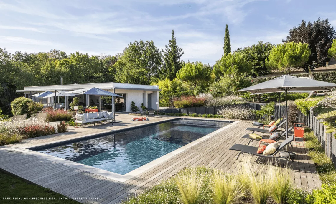 la piscine paysagee par l esprit piscine 10 x 5 m fond en pente composee de 1 10 a 1 40 m photo philippe nannett photo piscine piscine construction piscine