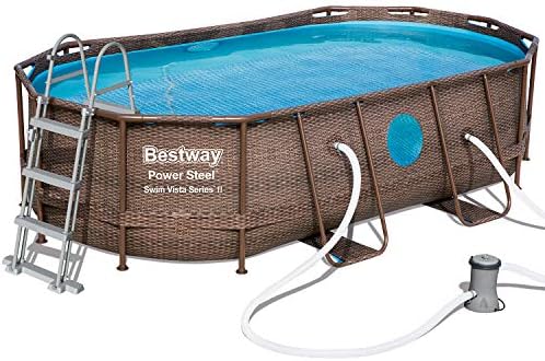 bestway power steel oval frame pool with filter pump swim vista rattan style with window 14 ft amazon co uk garden outdoors