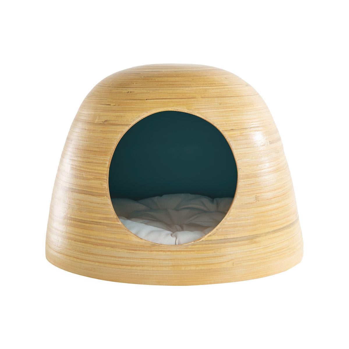 niche pour chat et chien design en bambou laquee bleu canard yodo leroy merlin