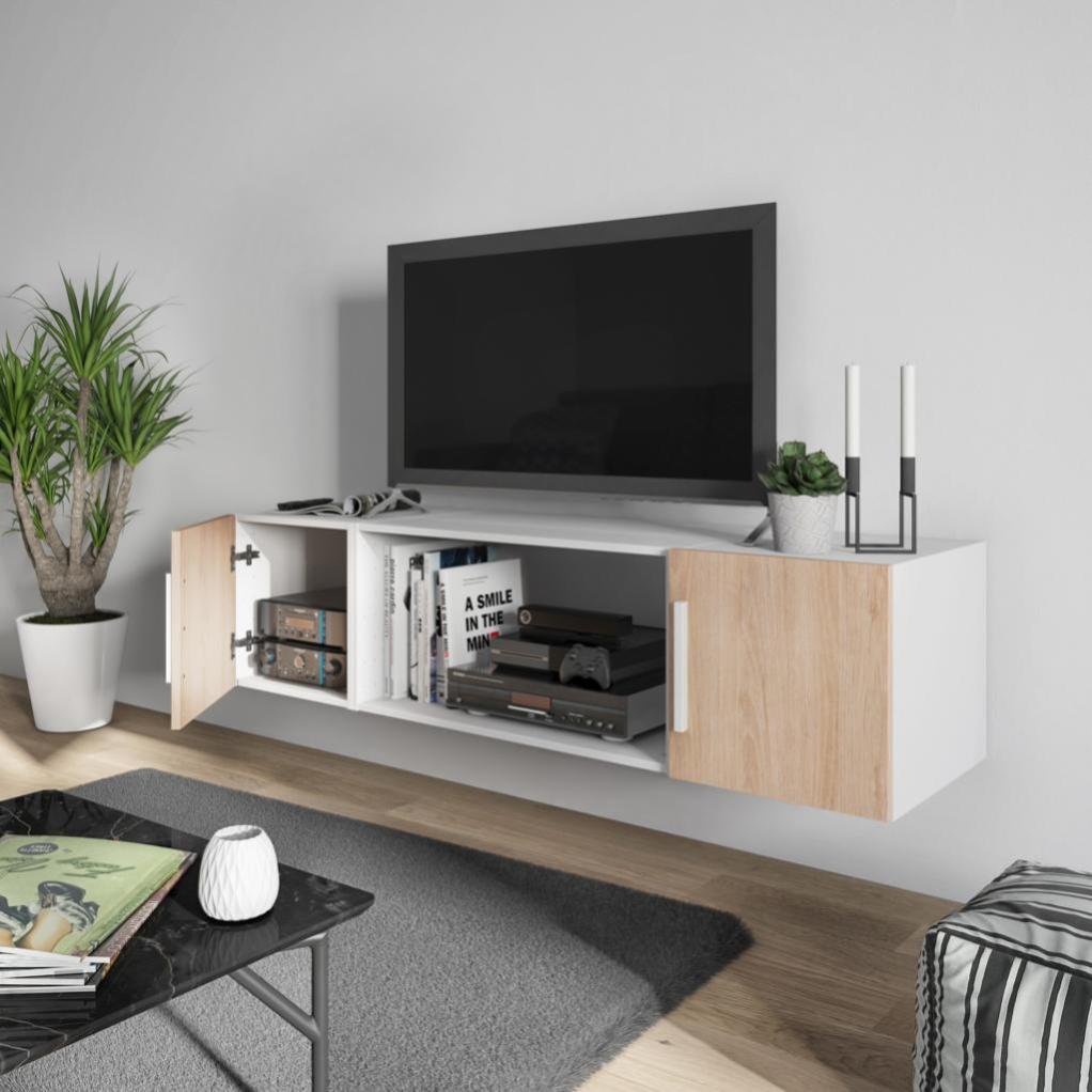 meuble tv blanc chene h 40 x l 160 x p 45 cm home leroy merlin