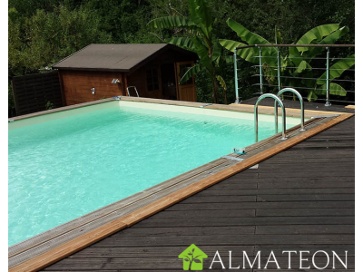 piscine en bois ubbink rectangulaire azura 200 x 350 cm hauteur de 71 cm liner coloris bleu adriatique almateon