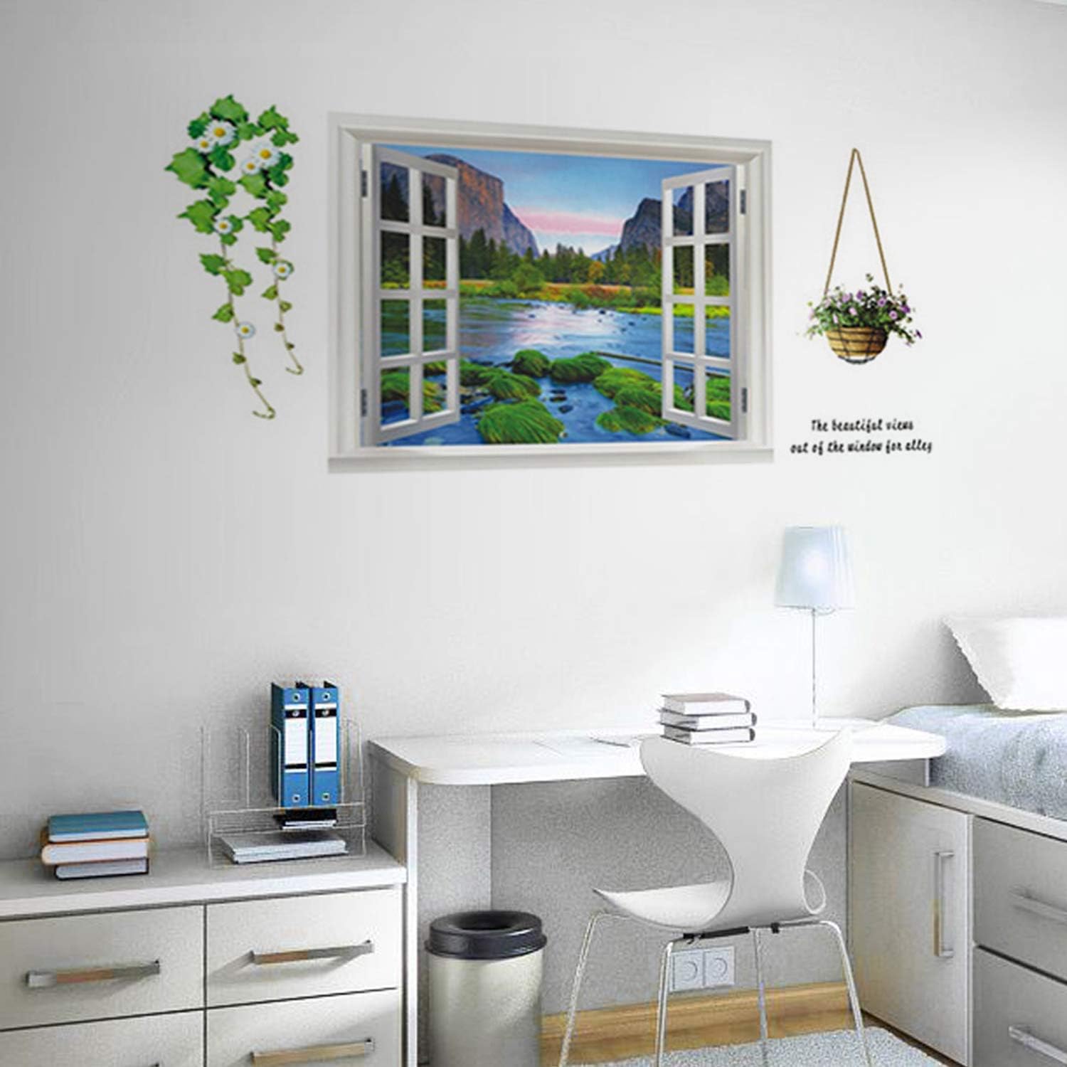 walplus tm autocollant mural 3d trompe l oeil fenetre avec vue sur une riviere amazon fr cuisine maison