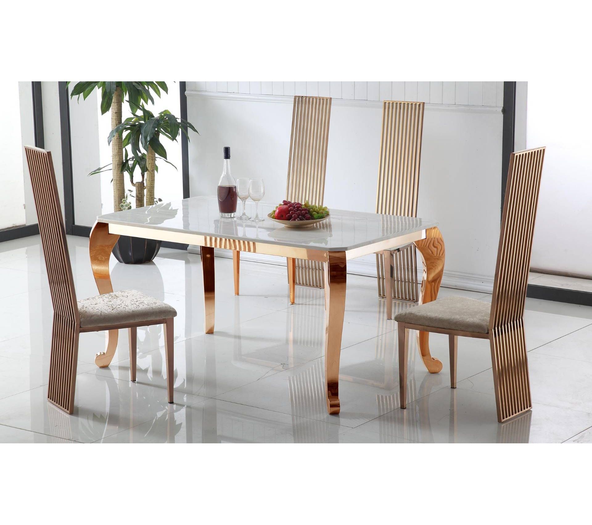 table a manger padma en marbre et pieds en or rose table but