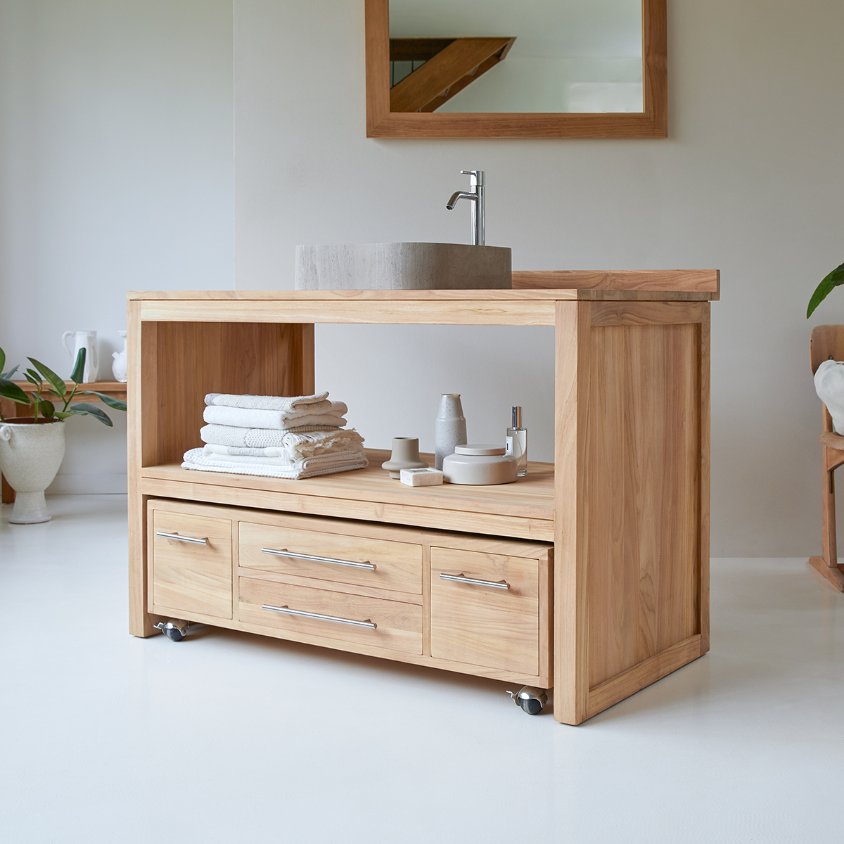 meuble sous vasque en teck 120 cm meuble de salle de bain tikamoon