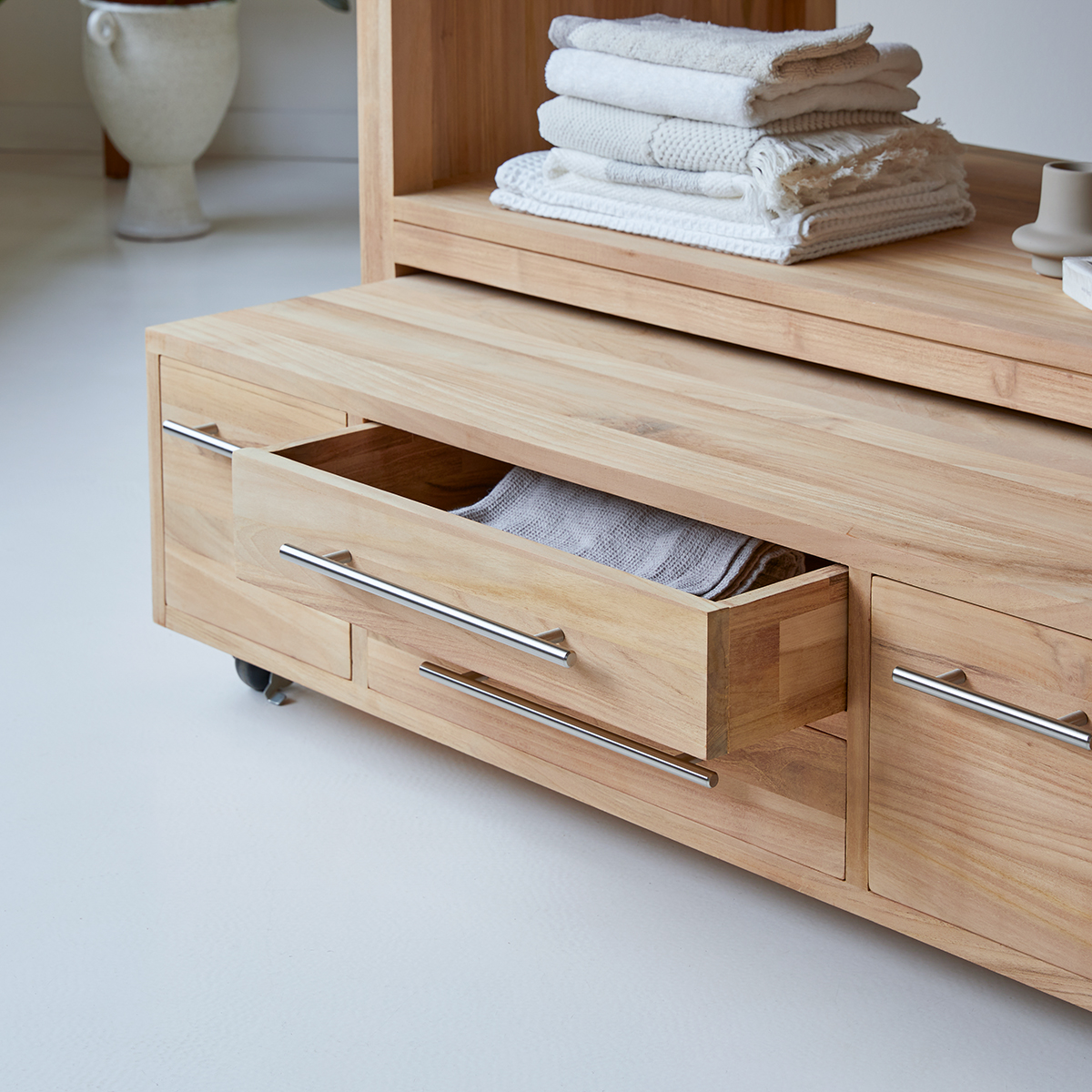 meuble sous vasque en teck 145 cm mobilier salle de bain tikamoon