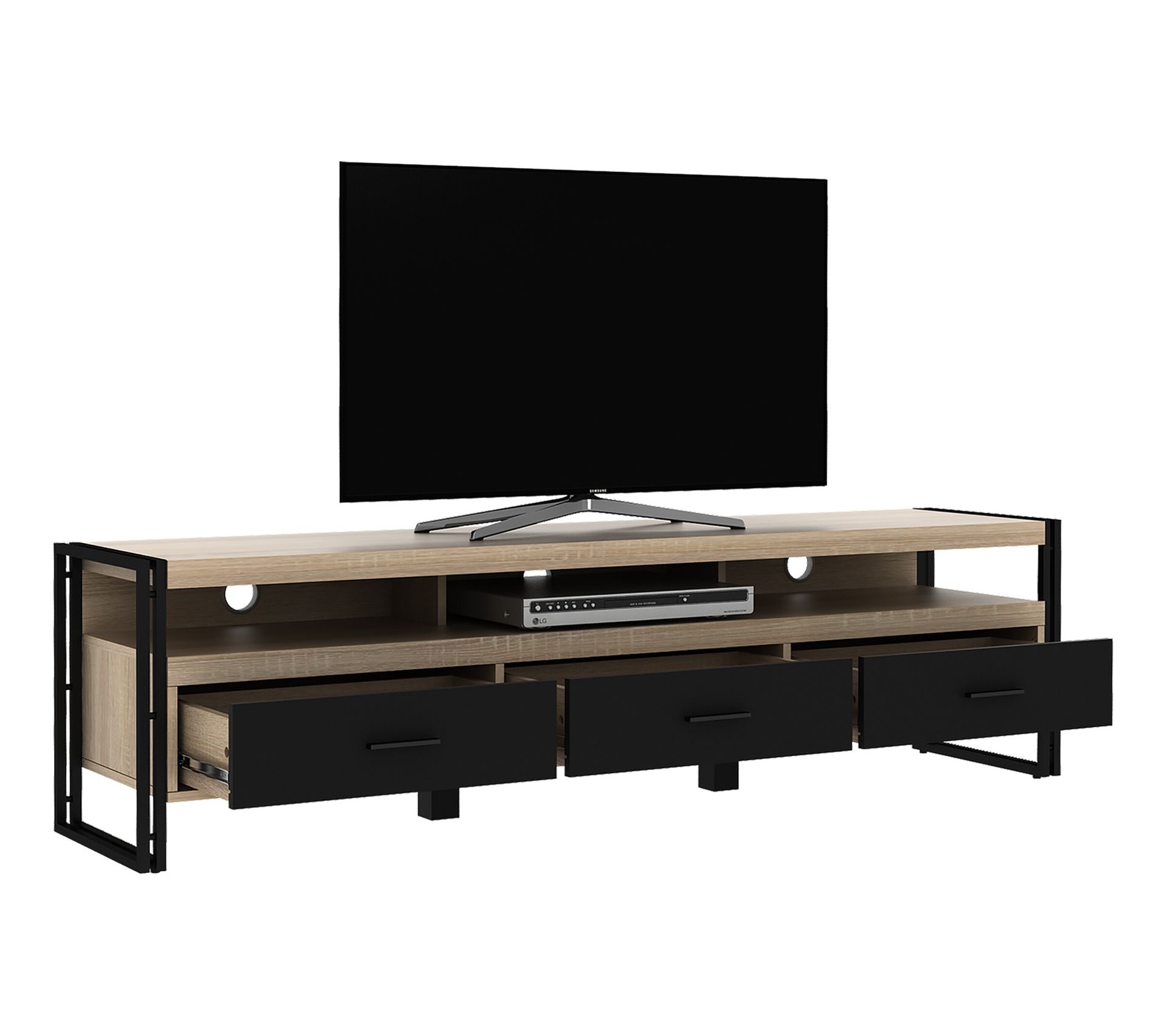 meuble tv style industriel parker 170cm imitation chene 3t noir meuble tv but