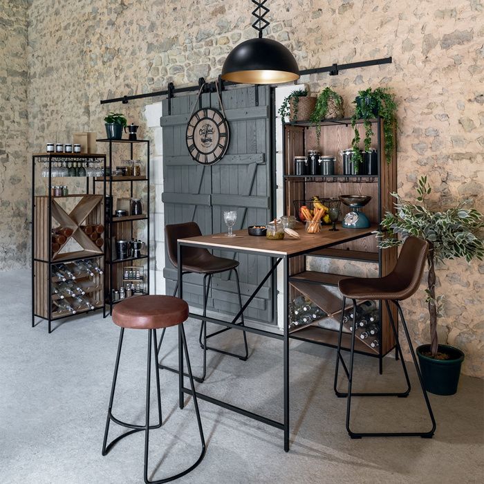 atmosphera meuble de bar range bouteilles et porte verres en bois et metal noir h 160 cn beige cdiscount maison