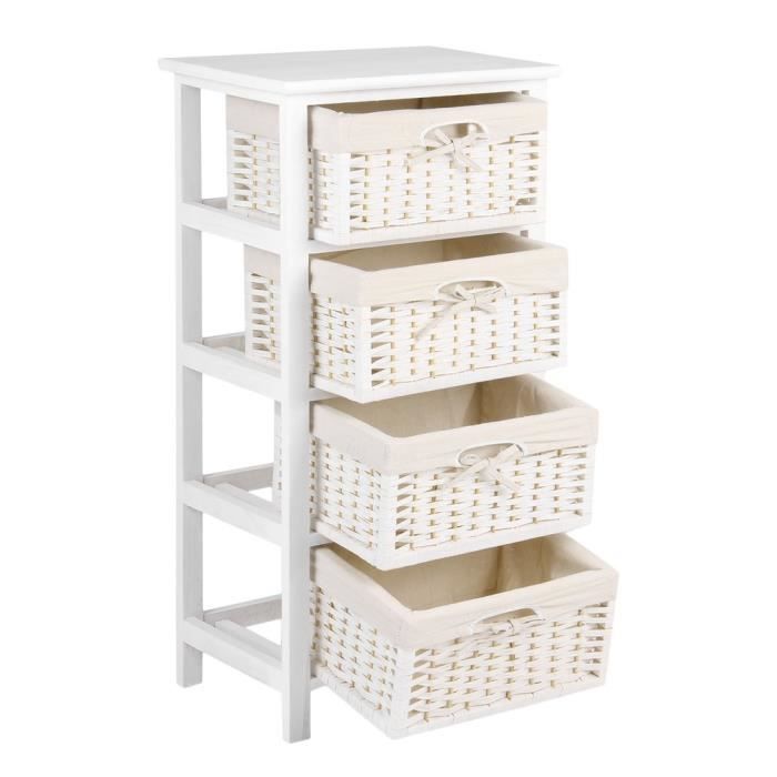 commode meuble avec 4 tiroirs bois laque blanc paniers tresses beige 43 x 30 x 90 cm cdiscount maison