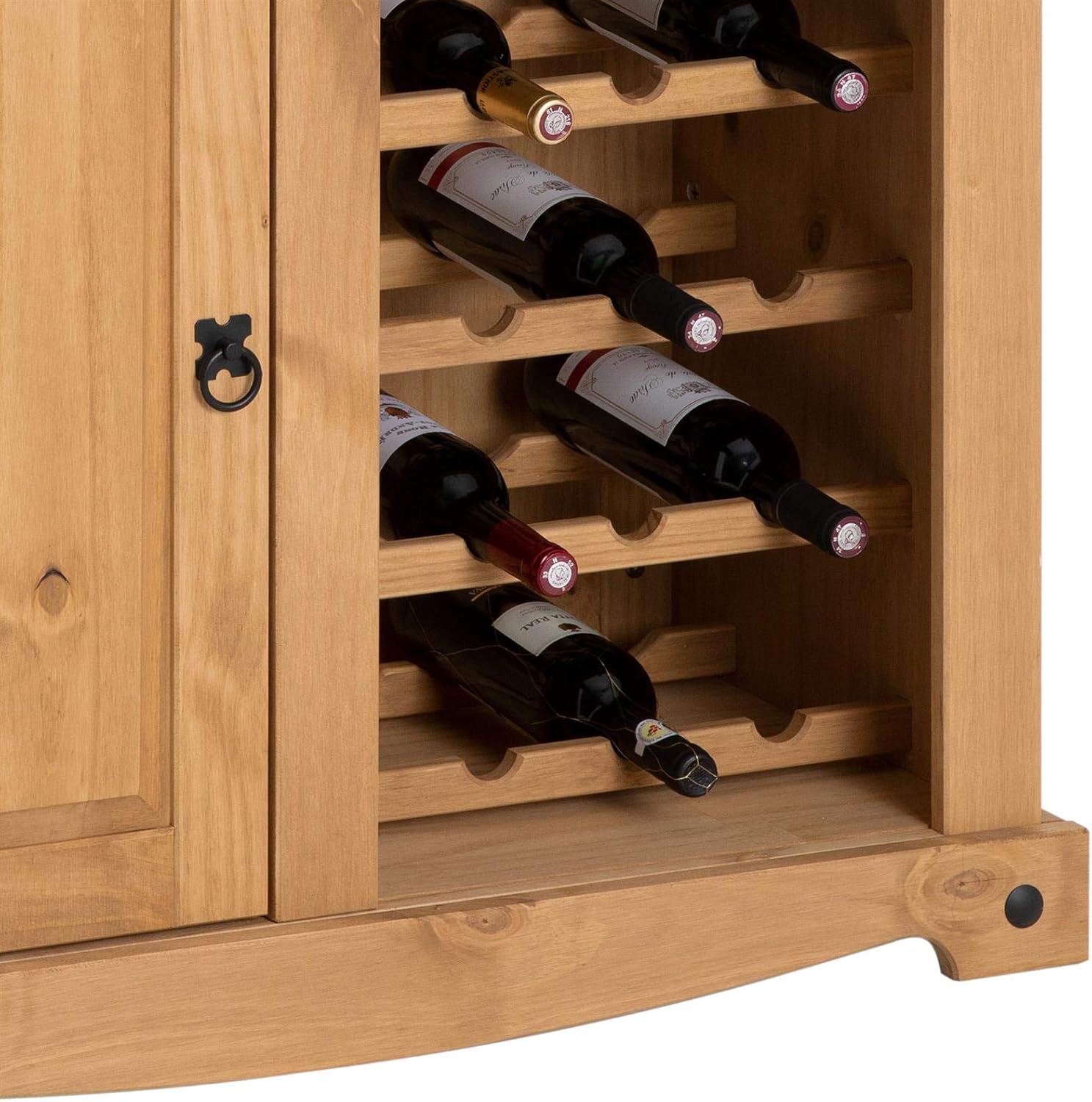 ilot central de style mexicain en pin massif finition ciree idimex table haute de bar tequila mange debout comptoir bar a vin avec range bouteilles vin spiritueux et range verres cuisine maison