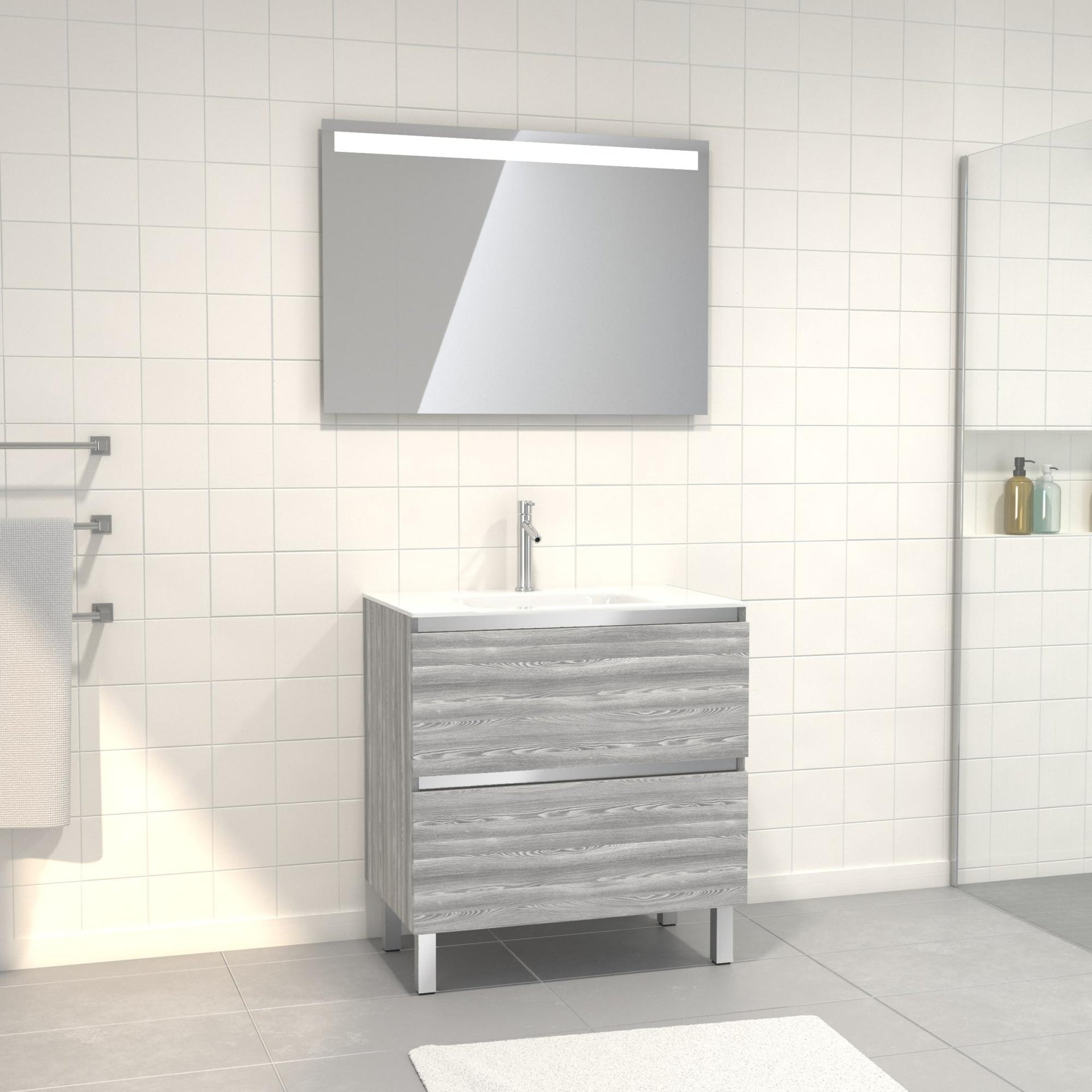meuble de salle de bain 80x50cm blanc 2 tiroirs et vasque resine blanche structure pieds et poignees noir mat structura p010 cdiscount maison