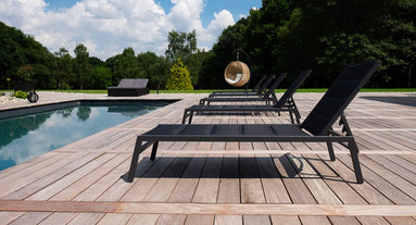 terrasse en bois surelevee avec filet suspendu diy idee d amenagement inspirante en 2021 amenagement terrasse exterieur amenagement exterieur piscine et jardin