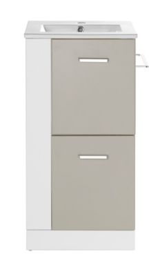 caisson meuble sous vasque version droite a poser cooke lewis waneta 43 cm facade taupe plan vasque en ceramique blanc castorama