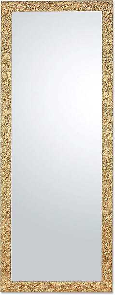 mo wa miroir mural classique dore avec cadre en bois sapin finition or antique mesure exterieure cm 55x145 verticale et horizontal fabrique en italie amazon fr cuisine maison